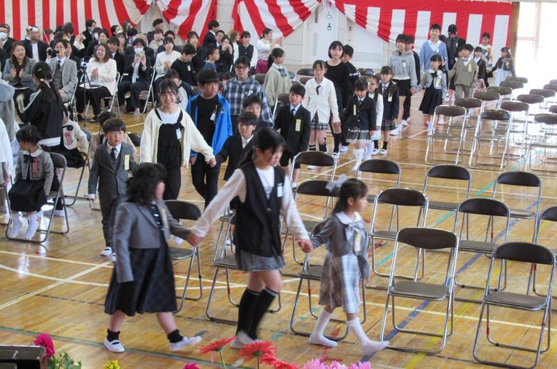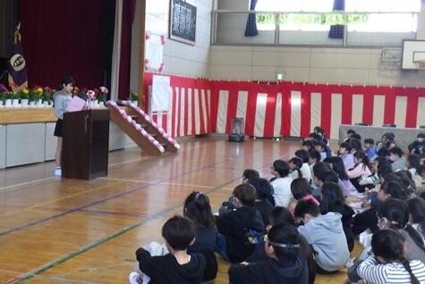 学校に待ちに待った春がやってきました。校庭の樹木や花壇の花々、まわりの山々はすっかり春色に変わり、まるで子供たちの入学や進級をお祝いしているようです。新入生45名を迎え、全校児童244名で令和8年度がスタートしました。入学・進級おめでとうございます。子供たちは、夢や希望を膨らませ、笑顔いっぱいで新年度を迎えることができました。