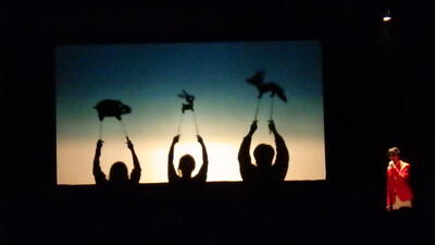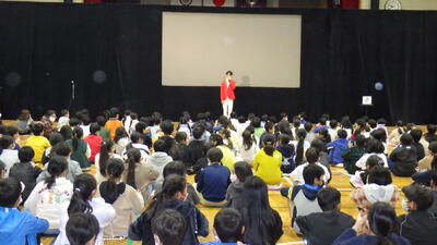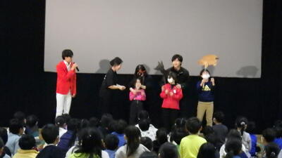 11月4日(月)の芸術鑑賞会では、劇団かしの木による影絵「100万回生きたねこ」と「ピーターパン」を鑑賞しました。光と影の美しさに児童からは「わーぁ」と歓声があがりました。また、影絵教室をしていただき、代表の児童がうさぎ、きつね、いのししを上手に動かすことができました。